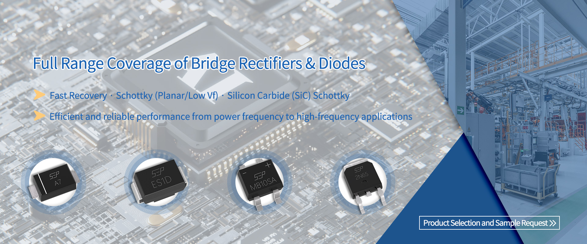 公司深耕电子元器件领域近二十年,致力于为电源、照明、汽车电子、工业控制、消费电子等行业提供高性能、高可靠性的产品与解决方案。公司产品线丰富多元,覆盖整流器件、功率二极管、MOSFET系列、三极管、三端稳压集成电路以及第三代半导体器件。